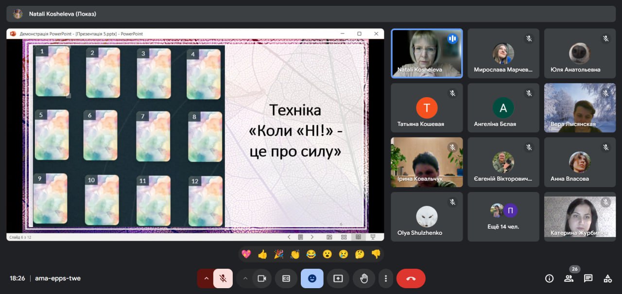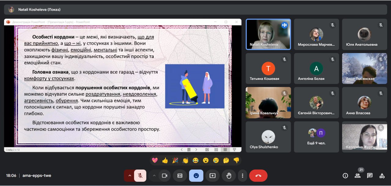 Another group online meeting using art therapy technologies took place on February 26, 2025 as part of the "Warm Wednesday" project from the Department of Psychology and the Center for Psychological Support of the Horlivka Institute of Foreign Languages. And again, a friendly supportive circle united students and graduates of the GIIM and teachers of Ukrainian secondary educational institutions.