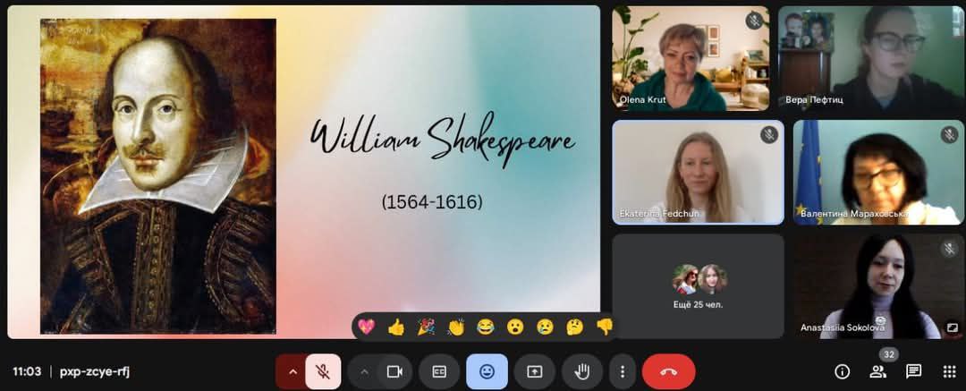 On April 23, 2025, the Department of English Philology and Translation of the Faculty of Social and Linguistic Communication of the Gorlovka Institute of Foreign Languages of the State Higher Educational Institution of the State Pedagogical University of the Ukrainian SSR held an event dedicated to the birthday of William Shakespeare (1564 -1616). The name of W. Shakespeare, his quotes, and catchphrases are known to the whole world.
