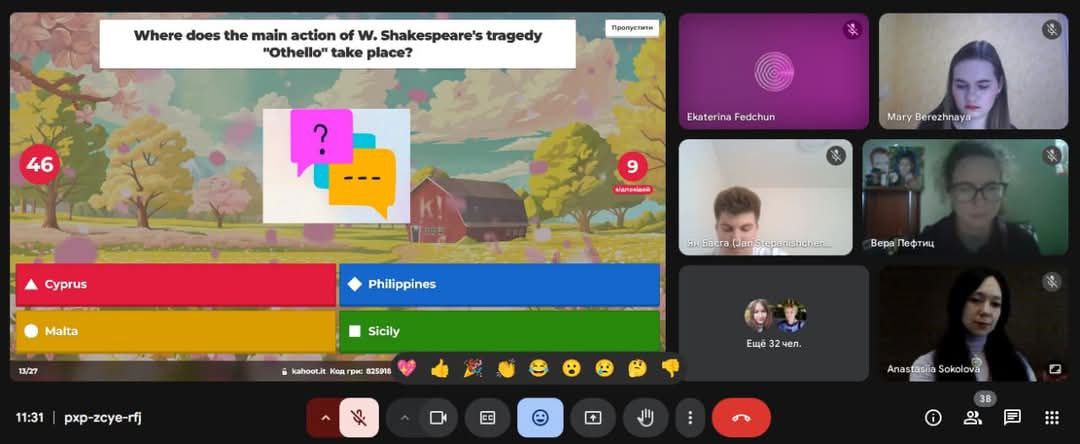 At this event, some secrets and mysteries of the life of W. Shakespeare were revealed, the guests learned many interesting facts from the life of the great English poet. Students recited sonnets by William Shakespeare, trying to convey all the feelings. A quiz was held on the Kahoot platform based on the materials of the event, where those who wished had the opportunity to test the acquired knowledge in practice.