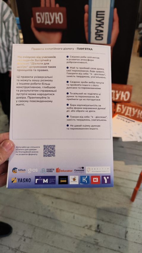 On June 14, 2025, the first event of a new public format, “Dialogues for Trust,” took place in Kyiv. This is not a lecture or a talk show, but a structured meeting built on the principles of group-centered facilitation, nonviolent communication, and respect for human dignity.