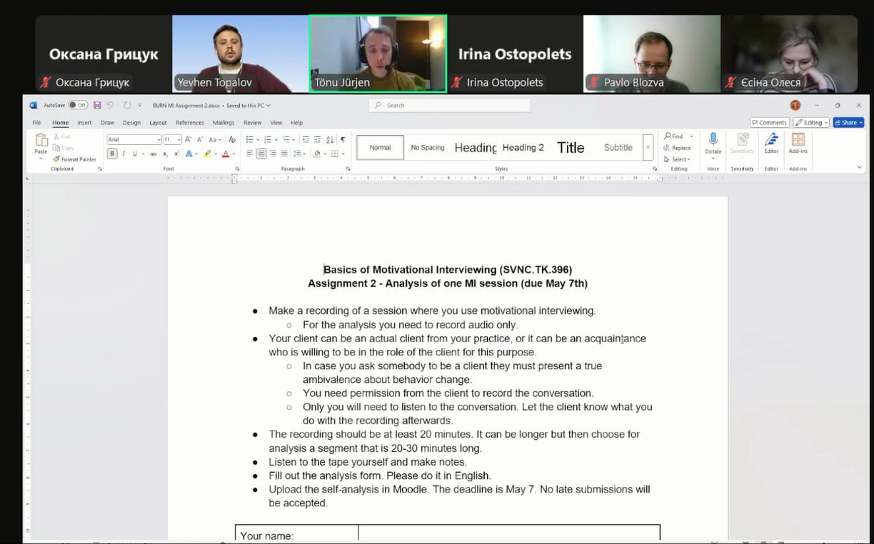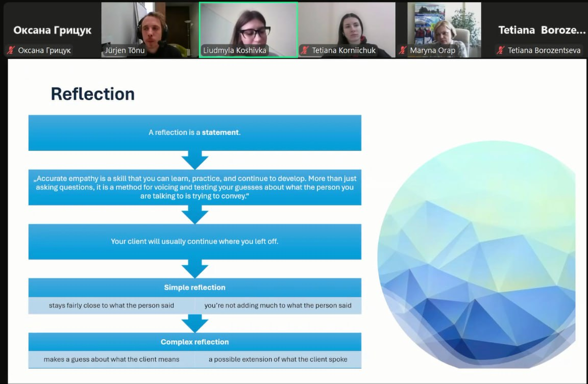 The implementation of the Erasmus+ BURN project "Strengthening Psychological Resilience and Well-being of Universities in (Post-)War Ukraine" continues. During March-April 2025, an online training on the basics of motivational interviewing was conducted for the scientific and pedagogical staff of the institute.