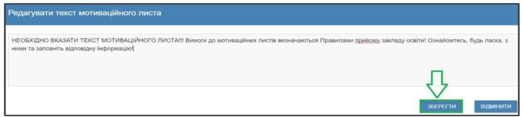 Read the requirements for the criteria for evaluating the motivation letter and click on the hyperlink "Requirements». To enter the text of the motivation letter, click on the entry «Enter the text of the motivation letter»: