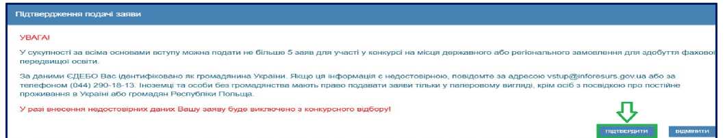 Read the confirmation of application submission, and if the data is correct, click the button «Confirm»: