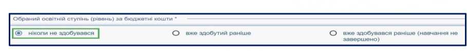 After the entrance exam (on the left) was chosen Submitting applications for admission, the Bid Selection Parameters will open, where below in the section Education document we indicate: Ccertificate (or diploma) of complete secondary education.
