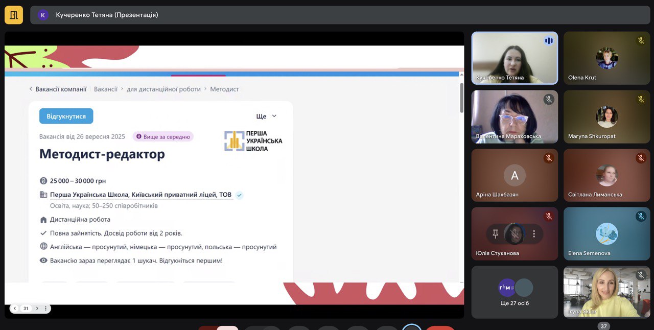 The master class was held Tetyana Kucherenko – a graduate of the Horlivka Institute of Foreign Languages (2018), a successful educational manager and a vivid example of professional realization. Ms. Tetyana is the director First Ukrainian School (Kyiv), winner of the competition World's Best School Prizes (2024), finalist Global Teacher Prize Ukraine (2021), project manager at "All-Ukrainian Online School", trainer of the New Ukrainian School, author of courses ("Creative Artificial Intelligence", "AI VS World")