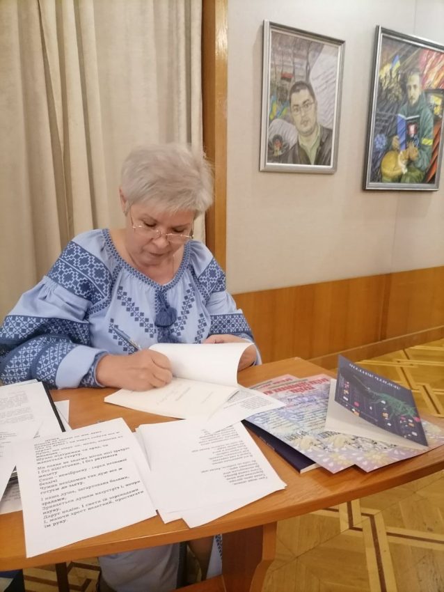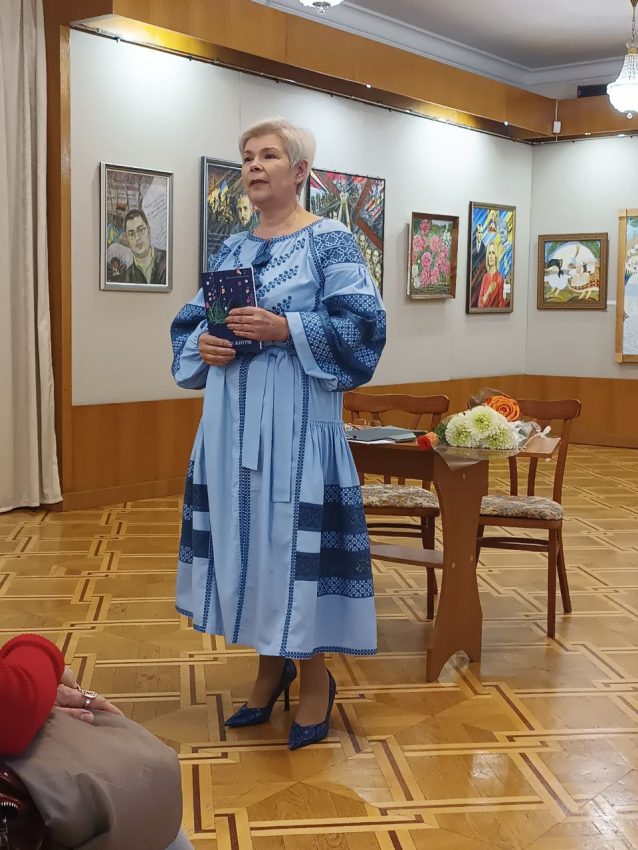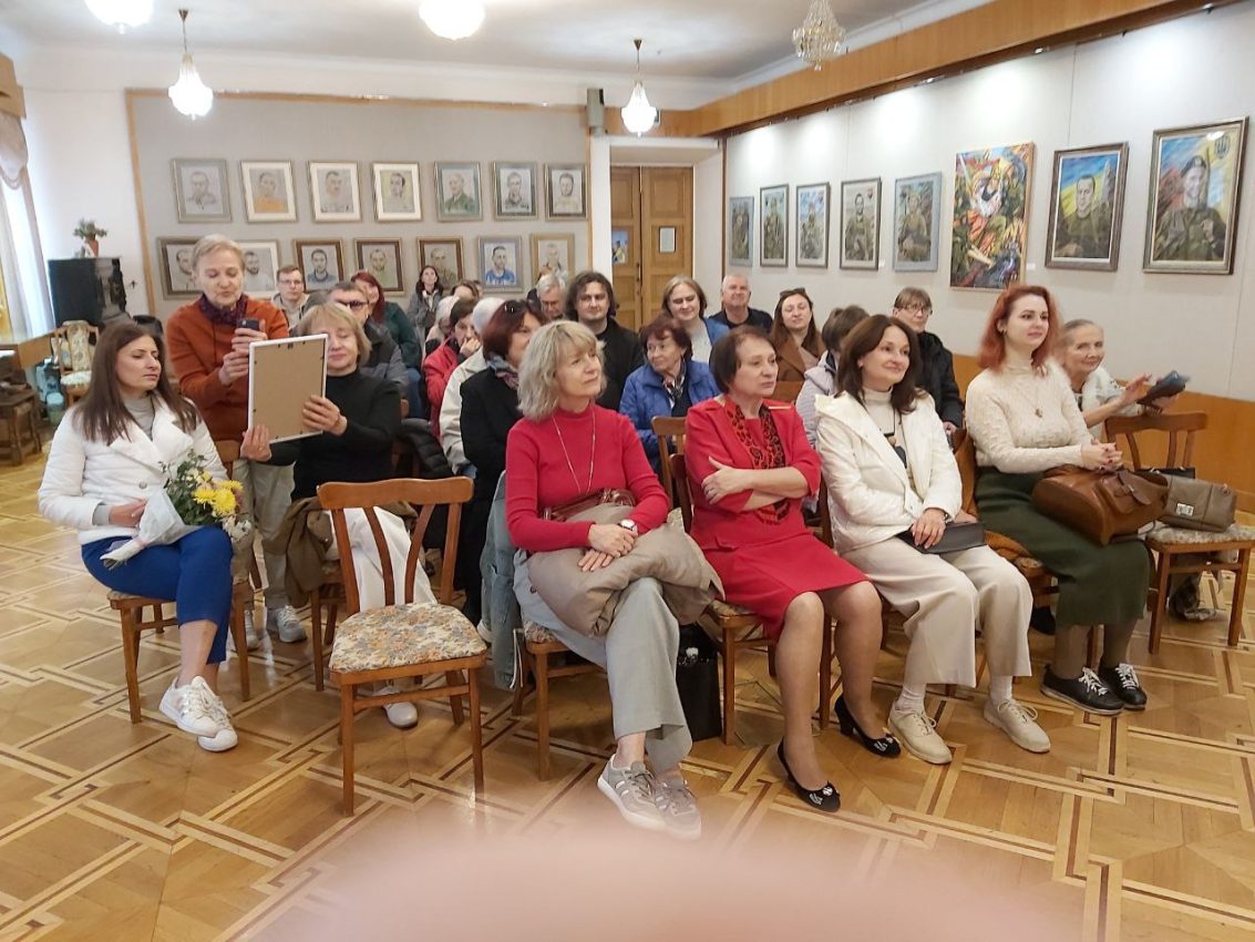 The presentation took place in a very warm circle of creative people. The community is replenished every time with people from Bakhmut, Kyiv, Horlivka, Brovary... The air raid warning did not prevent creative communication: prose was read on the street, and photographs were taken. And after the warning was over, everyone returned to the hall. Poems and prose were recited. Warm words were heard from Halyna Dokashenko, professor of the Department of National and Foreign History of the Horlivka Institute of Foreign Languages; Pavlo Kushch, journalist, member of the NSPU and NSZHU; Valentyna Kovalivska, poetess, member of the Brovary literary and artistic association "Krynytsia". Valeria Kovalska spoke about the work on the design and layout of the book.