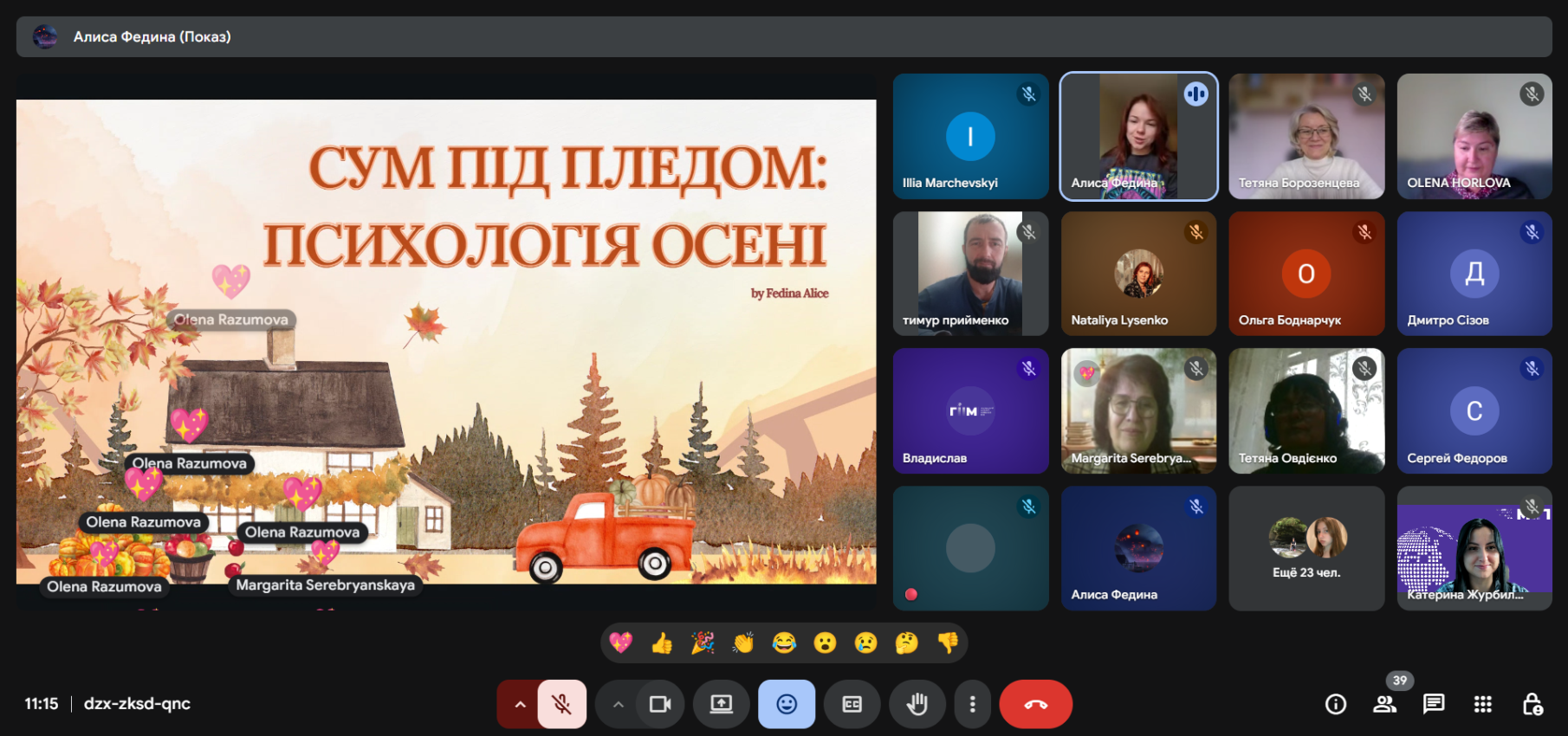 Today, the first event of Psychology Week took place at GIIM - a cozy webinar "Sum under the Blanket. Psychology of Autumn", organized by the Center for Psychological Resilience of GIIM within the framework of the Erasmus+ KA2 BURN project - "Strengthening Psychological Resilience and Well-being of the University Community in the (Post)War Ukrainian State" (BURN - ERASMUS-EDU-2023-CBHE), funded by the European Union.