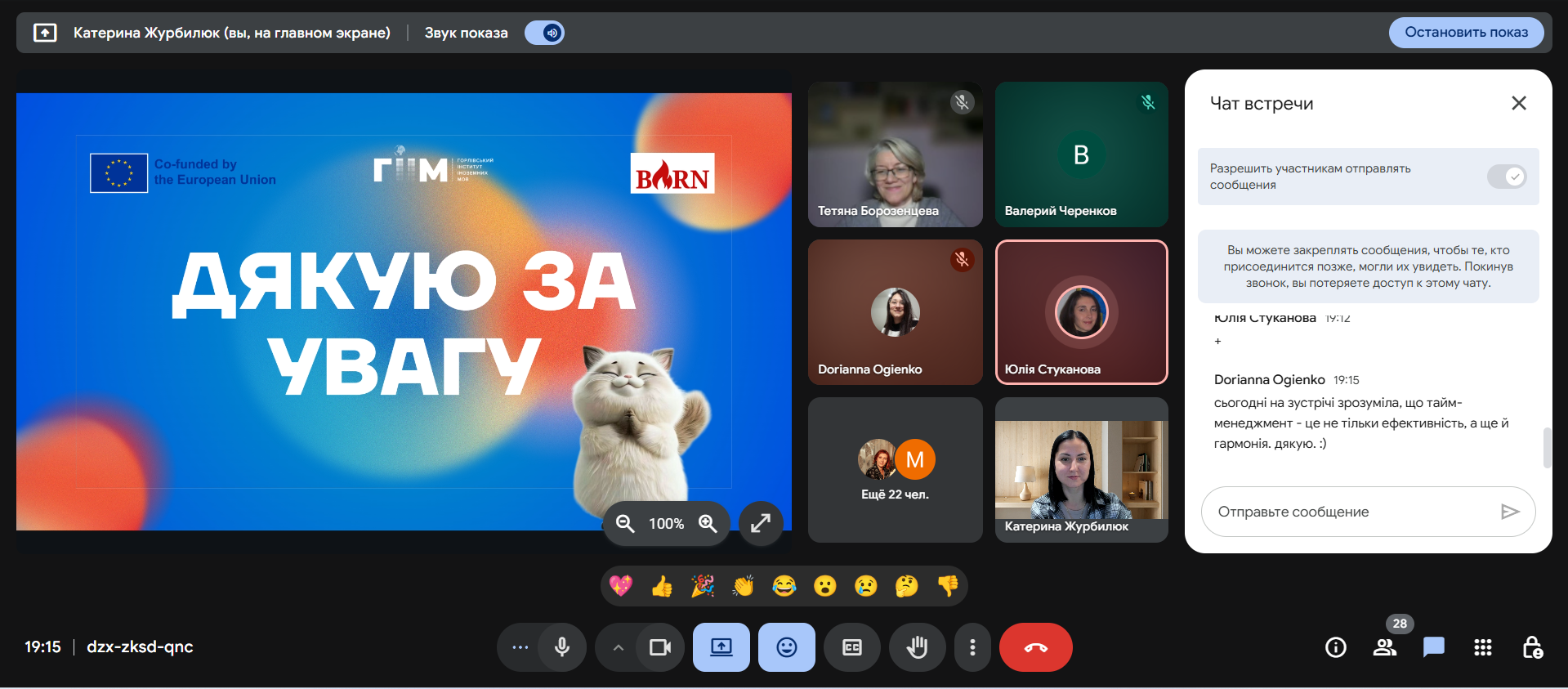 The meeting was held by the center's practical psychologist, Kateryna Zhurbylyuk. For her, as she noted, it was an honor to open the new season of "Warm Amongst" and start it with a topic that concerns everyone - time management.