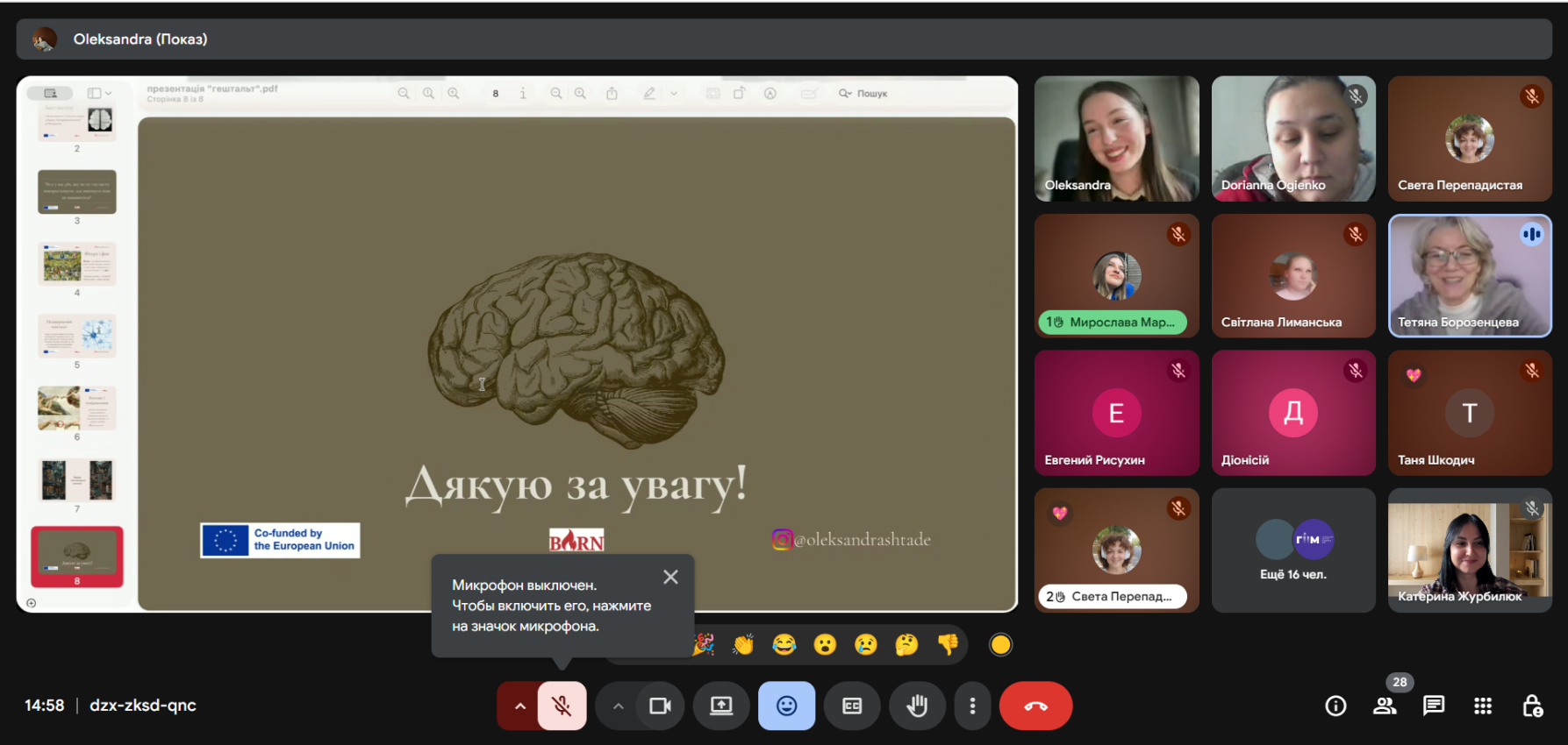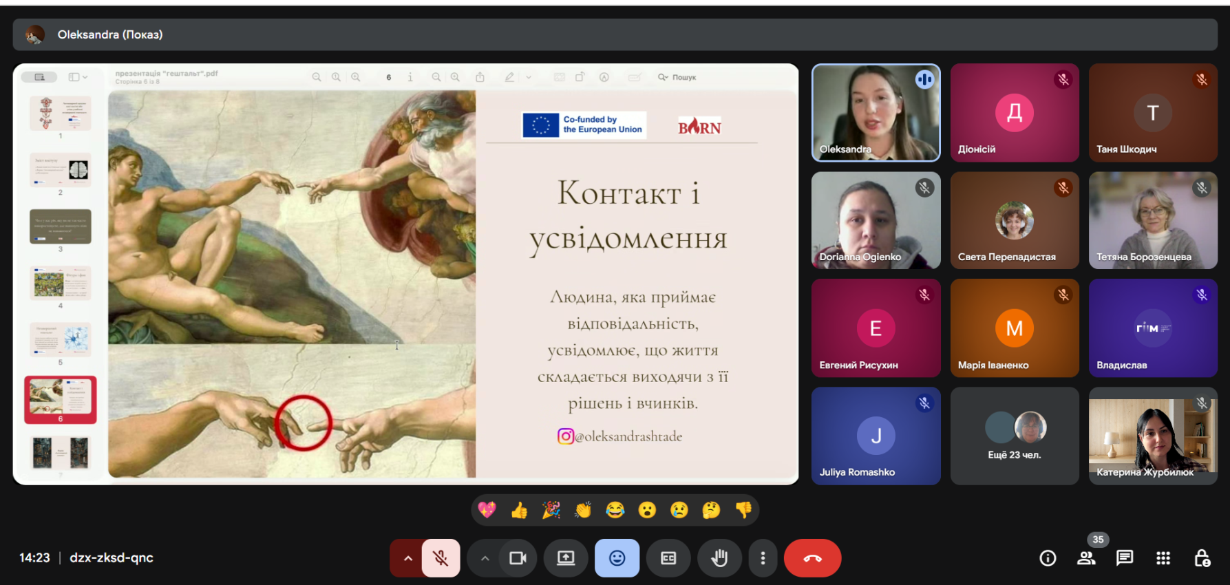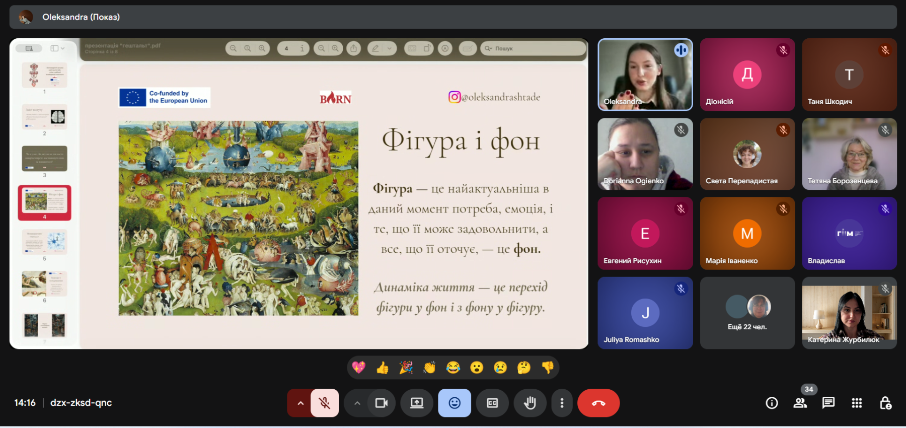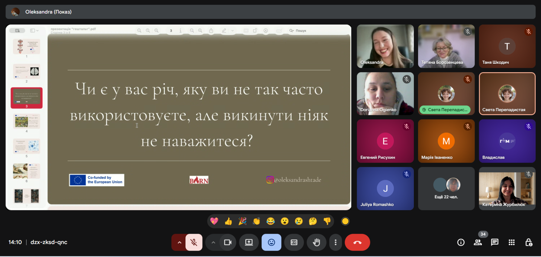 Thanks to Oleksandra's sincere presentation, the atmosphere of the meeting became both educational and therapeutic. Participants noted that the webinar helped them look at their own "unfinished stories" in a new way and feel how awareness brings energy back to life.