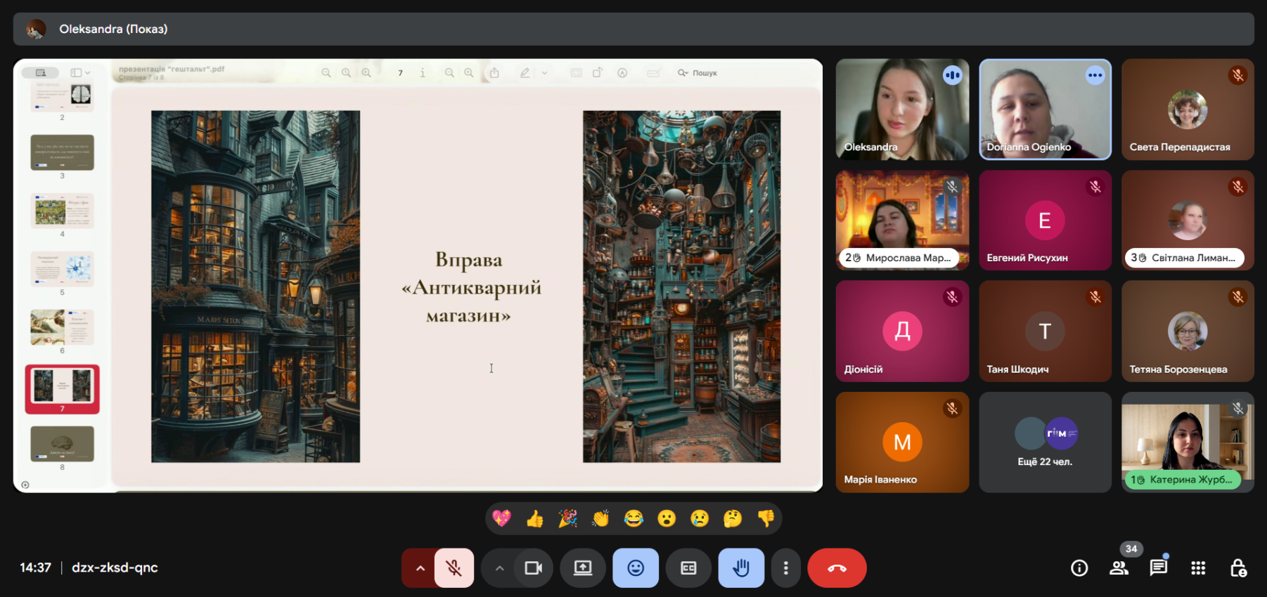 A separate part of the webinar was the reflective exercise "Antique Shop", where everyone had the opportunity to imagine an antique shop, find images there that still retain emotional meaning, and say goodbye to what has lost its relevance.