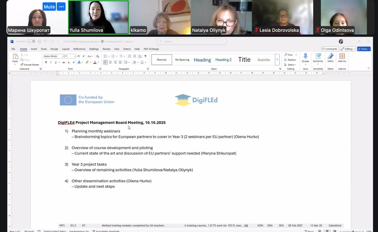 On October 10, 2025, an online meeting of managers of the project's partner universities took place Erasmus+ DigiFLEdIt became an important milestone in the joint work on modernizing university foreign language education programs through the integration of digital technologies.