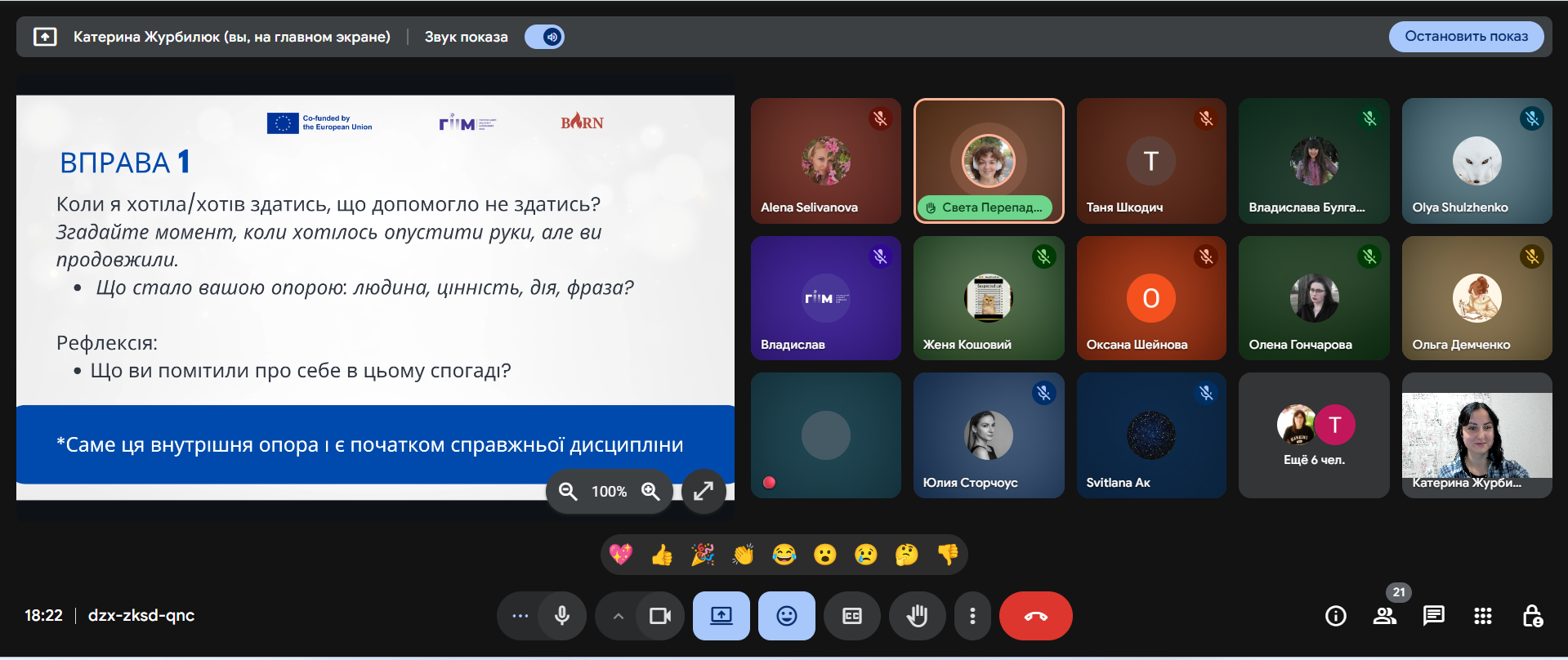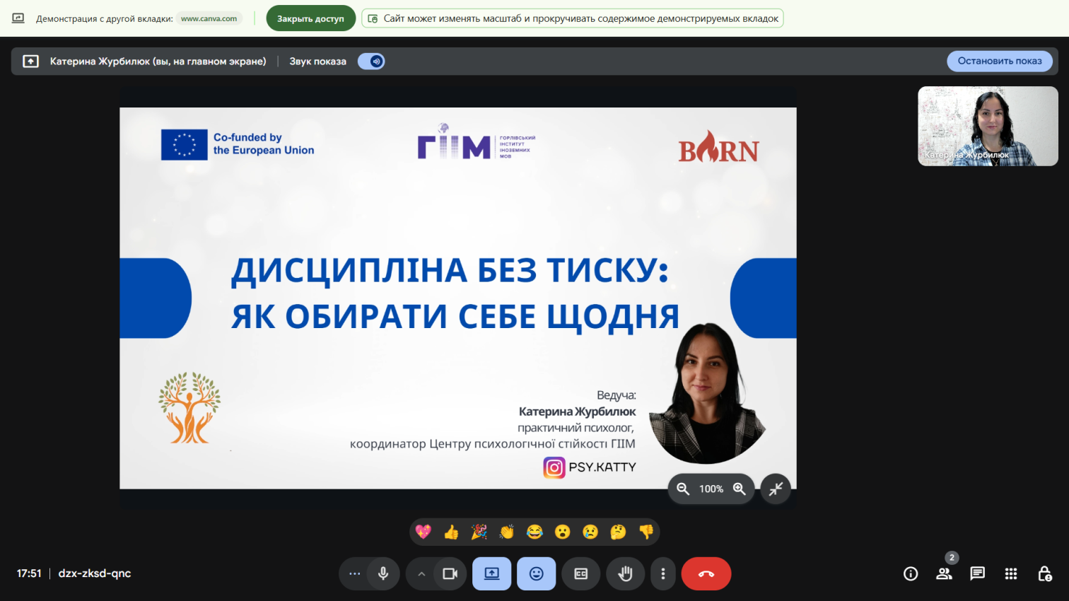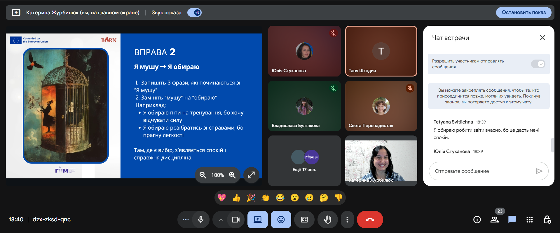 During the webinar, in a warm and trusting atmosphere, participants, together with the leading psychologist Kateryna Zhurbilyuk, reconsidered their own attitude to the discipline, performed reflective exercises and shared thoughts in the chat. Through real-life examples and therapeutic stories, we examined how the state changes when, instead of the phrase "I must" we tell ourselves "I choose".