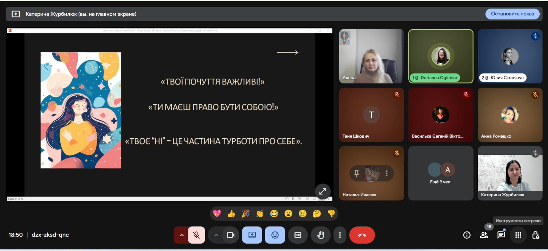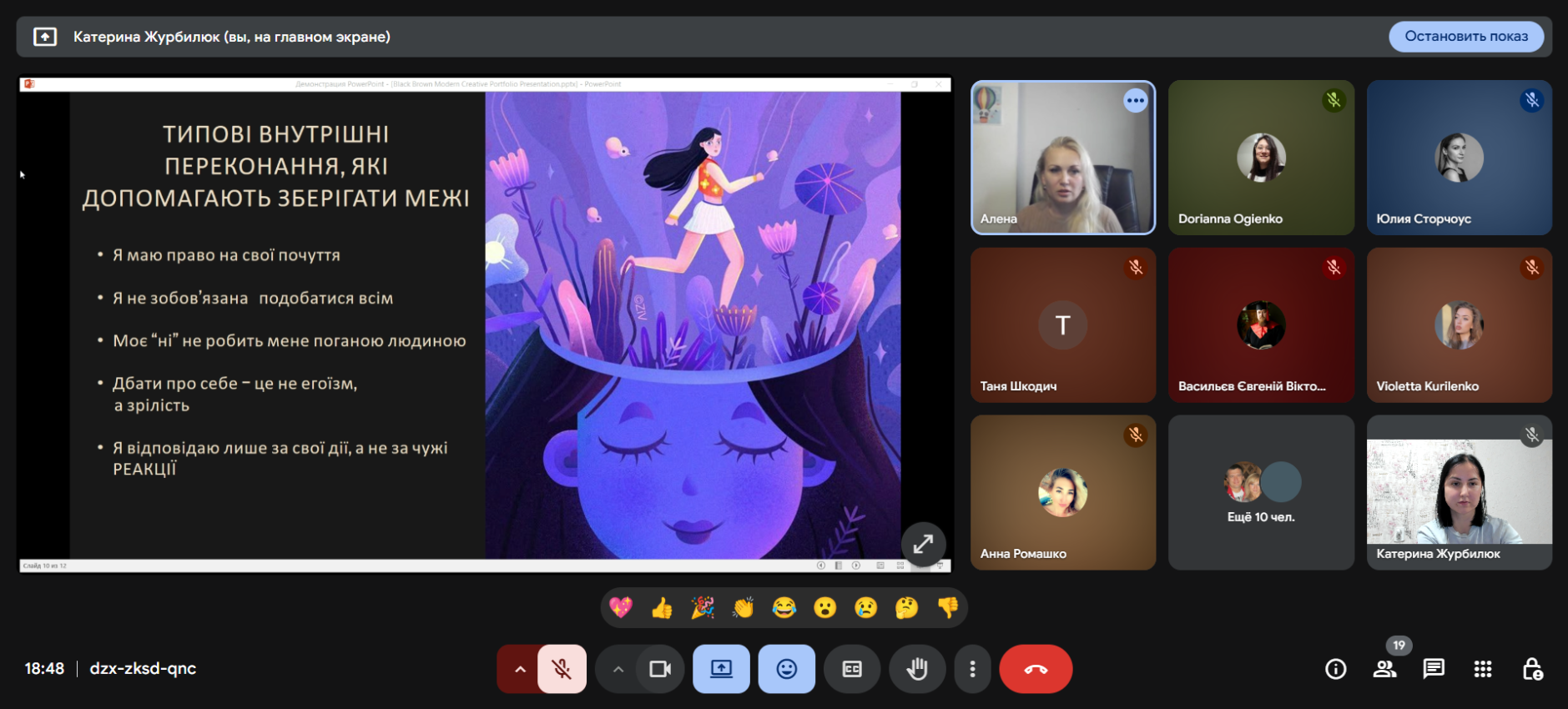 During the meeting, the participants explored the topic of personal boundaries — both physical and emotional or professional. Olena explained why it is sometimes difficult for us to say “no” — due to the desire to be liked, fear of conflict, or feelings of guilt. Together, the participants looked for ways to learn how to defend their boundaries without aggression and guilt.