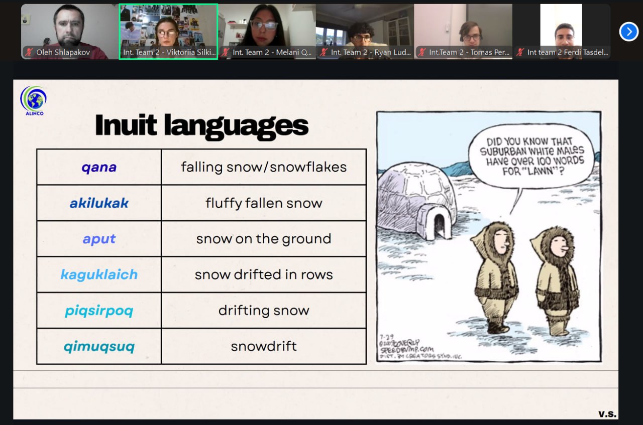 The team focused on the fact that language is a factor in the formation of national identity, worldview and thinking; briefly reviewed theories of the origin of language and the functions of language, discussed the Sapir-Whorf hypothesis, and compared how “futured” and “futureless” languages have different impacts on the practical actions of a language community. Using the example of an interethnic conflict in Rwanda, it was shown how a word spoken in the media can kill no worse than a machine gun. The topic of the presentation was announced by the creative video trailer, created by the efforts of students. Amidst the audience's enthusiastic responses, the words were heard fabulous, fantastic, amazingThe most active role in preparing the presentation was played by a graduate student from our university, Victoria Silkina (504 gr). In the discussion, the applicants supported Miller S. (gr. 504a), Peftits V. (gr. 241), Doronchenko G. (gr.211a). Sincere thanks to everyone! See you next Wednesday!
