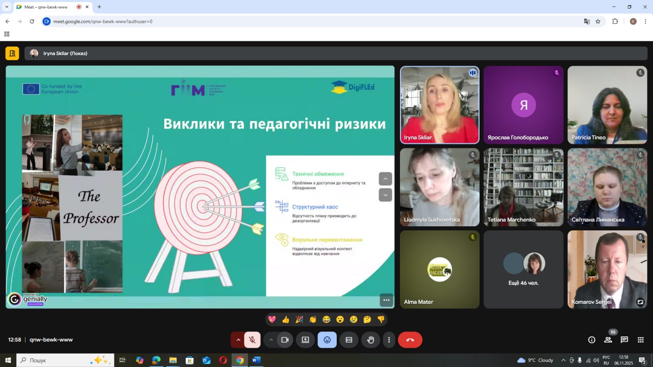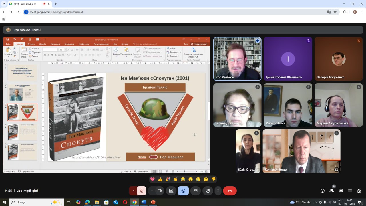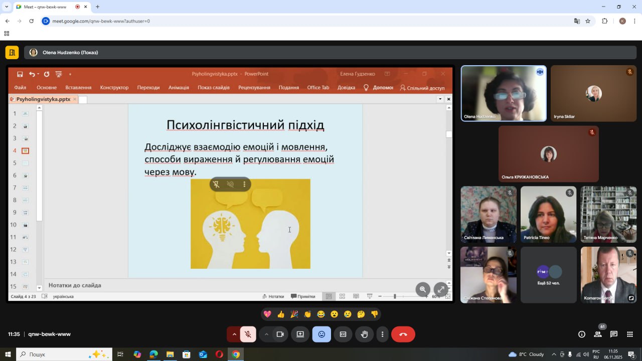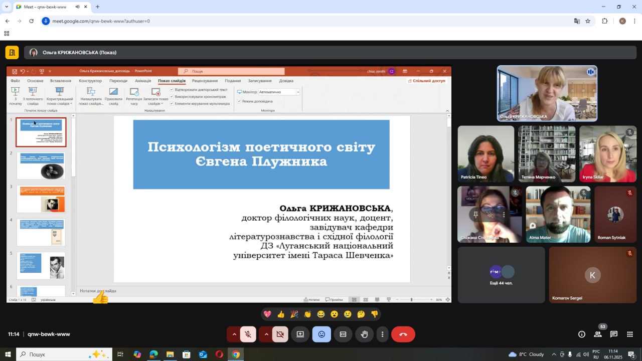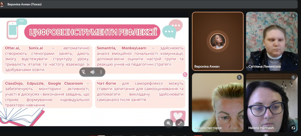 A lively discussion at the plenary session was caused by the reports of Dr. Philology, Associate Professor Kryzhanovska O. O. (Luhansk Taras Shevchenko National University) “Psychologizm of the Poetic World of Yevhen Pluzhnyk”; Ph.D., Associate Professor Gudzenko O. G. (Horlivka Institute of Foreign Languages, Donbas State Pedagogical University) “Psycholinguistic Aspects of Emotional Self-Regulation in Conditions of Conflict Communication”; Research Professor Tineo P. (Pontifical Catholic University of Madre y Maestra, Dominican Republic), Ph.D., Associate Professor Shlapakov O. S., Ph.D., Associate Professor Sukhovetska L. V. (Horlivka Institute of Foreign Languages, Donbas State Pedagogical University) “English Language Practice in the Virtual Context of International Interaction”; Doctor of Philology, Professor Goloborodka Ya. Yu. (Horlivka Institute of Foreign Languages, Donbas State Pedagogical University) “Literatographer. “Without Fate” and the Features of the Film Adaptation of this Text (about the Novel by Imre Kertész – Nobel Prize Laureate in Literature)”; Doctor of Philology, Associate Professor Sklyar I. O. (Horlivka Institute of Foreign Languages, Donbas State Pedagogical University) “Online Boards as a Space for Pedagogical Interaction: Scenarios for Integration into the Educational Process”.