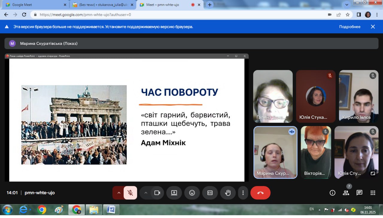 The conference was held online. The moderators of the forum were K. philol. Ph.D., Associate Professor of the Department of Ukrainian Philology Sklyar I. AT. and d. philol. n., professor, head of the Department of World Literature Komarov S. AND.