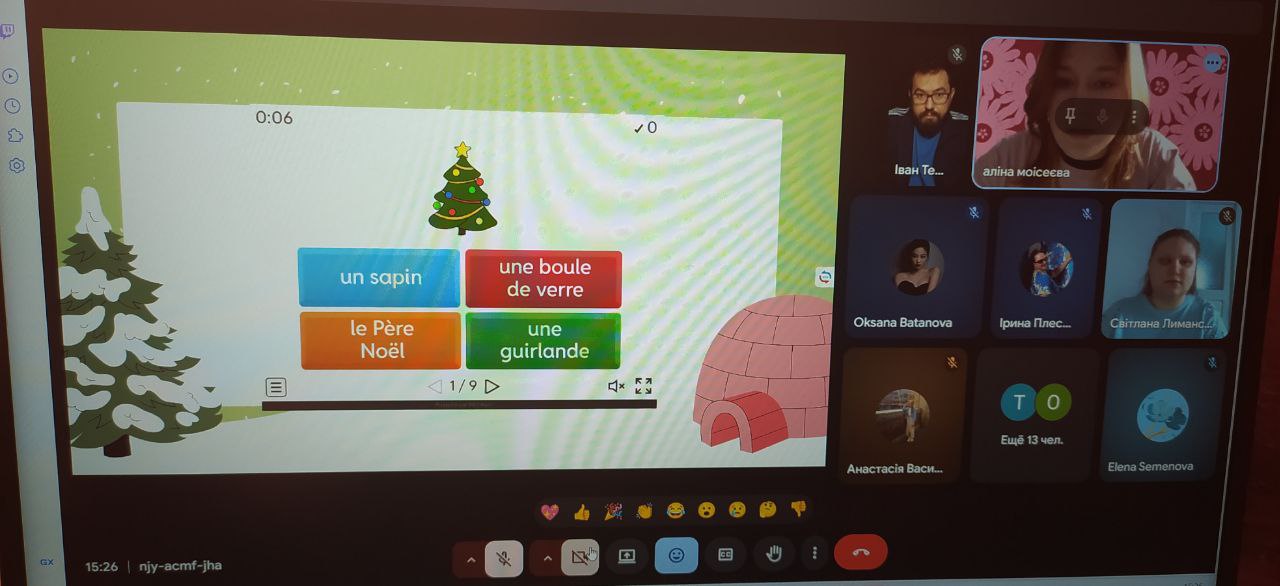 The aim of the event was to popularize the French language and introduce the Christmas traditions of France. A warm festive atmosphere of lively dialogue prevailed throughout the meeting. The participants were offered various interactive activities: solving crossword puzzles, getting to know the traditions of celebrating Christmas, and national Christmas dishes of France in a bright interactive format.