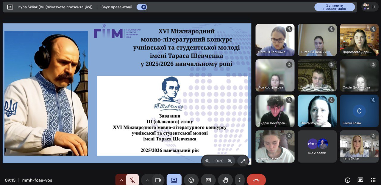 January 9, 2026 The Horlivka Institute of Foreign Languages has become a center of creativity, wisdom, and national spirit. Today, a distance learning format was held III (regional) stage of the 16th International Language and Literary Competition of School and Student Youth named after Taras Shevchenko.