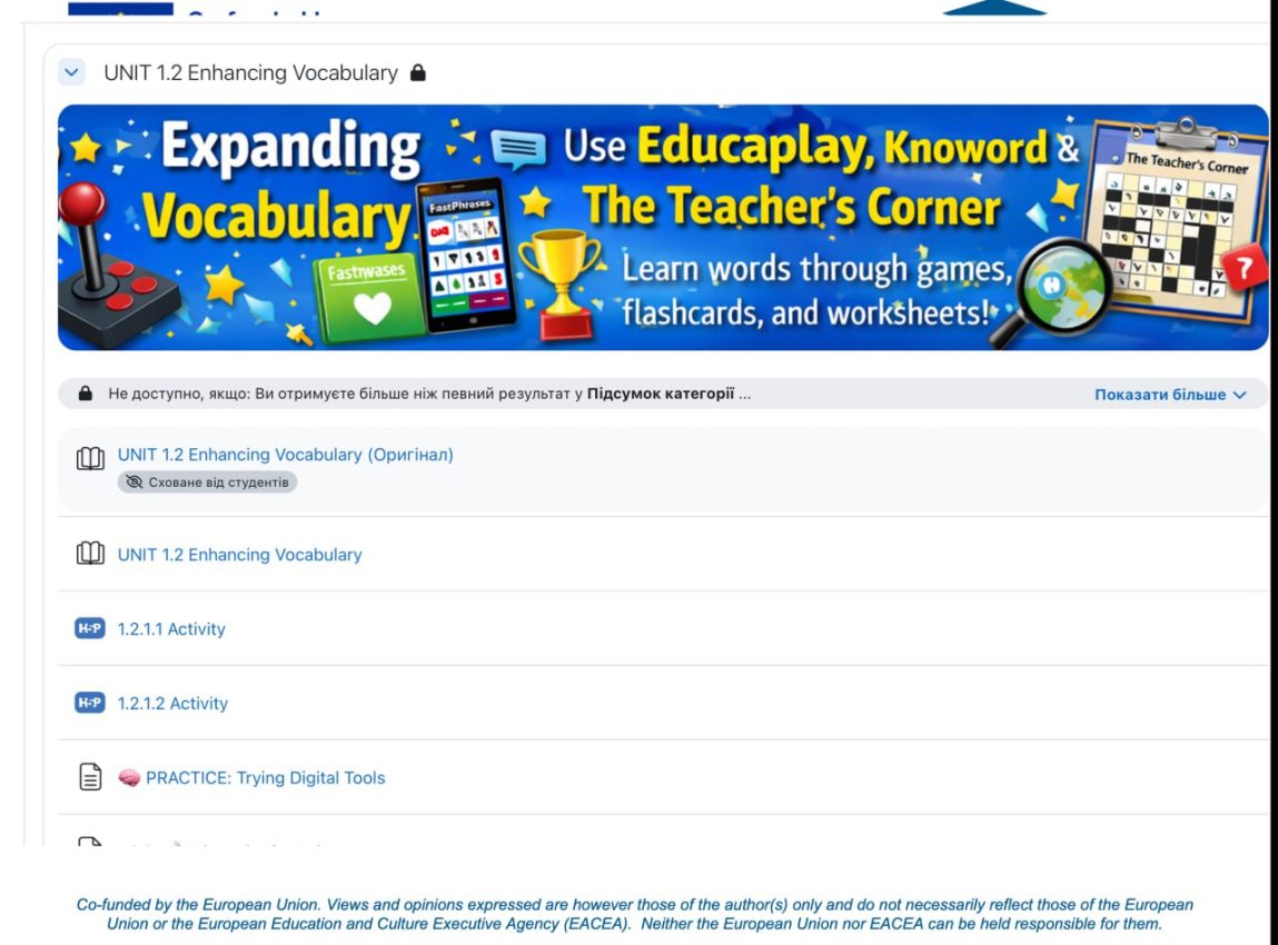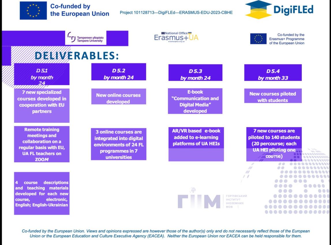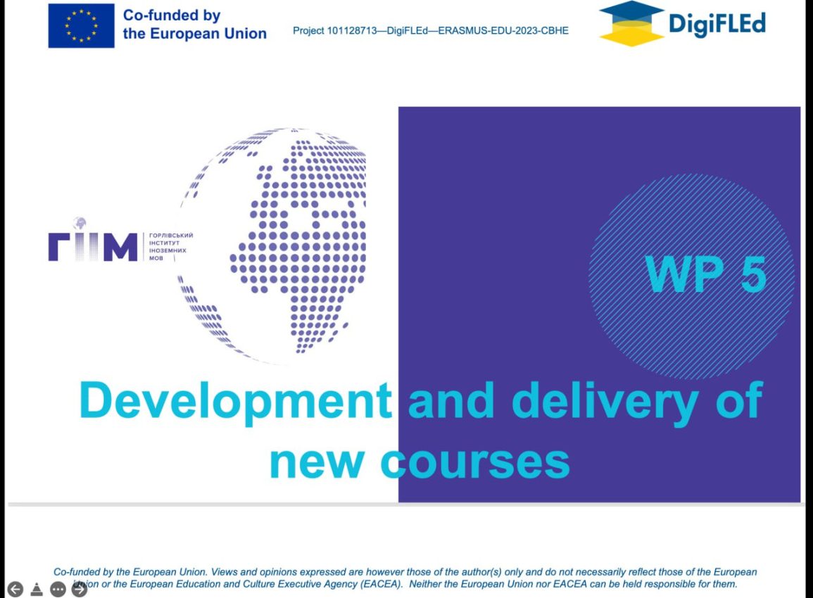 - piloting of electronic courses "Ukrainian Language and Culture", "Digital Methods of Language Teaching", "Academic Writing for Scientific Publications";