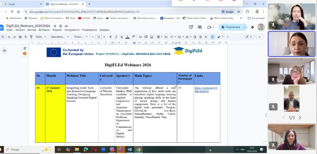 The leader of work package 7 – Dissemination of project results, Olena Gurko from DNU, spoke about the tasks for the spring semester. All partners are preparing webinars to disseminate the project results. The next webinars will be held: 02/25/2026 "From infographics to storytelling: visual tools of the modern lesson", which will be conducted by GIIM team members Anna Vlasova and Alisa Koroleva, and 02/26/2026 by the team of Maynooth University of Ireland 'Using Vevox to increase student engagement'.