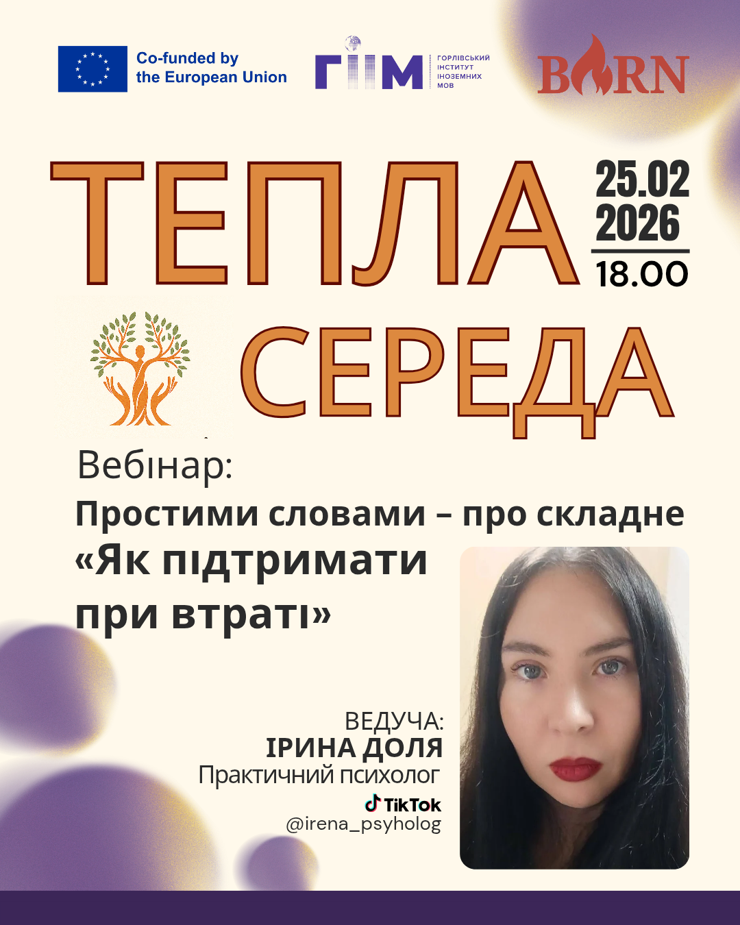 With the support of the Erasmus+ KA2 BURN project – “Enhancing the psychological resilience and well-being of the university community in the (post)war Ukrainian state” (BURN – ERASMUS-EDU-2023-CBHE), funded by the European Union.