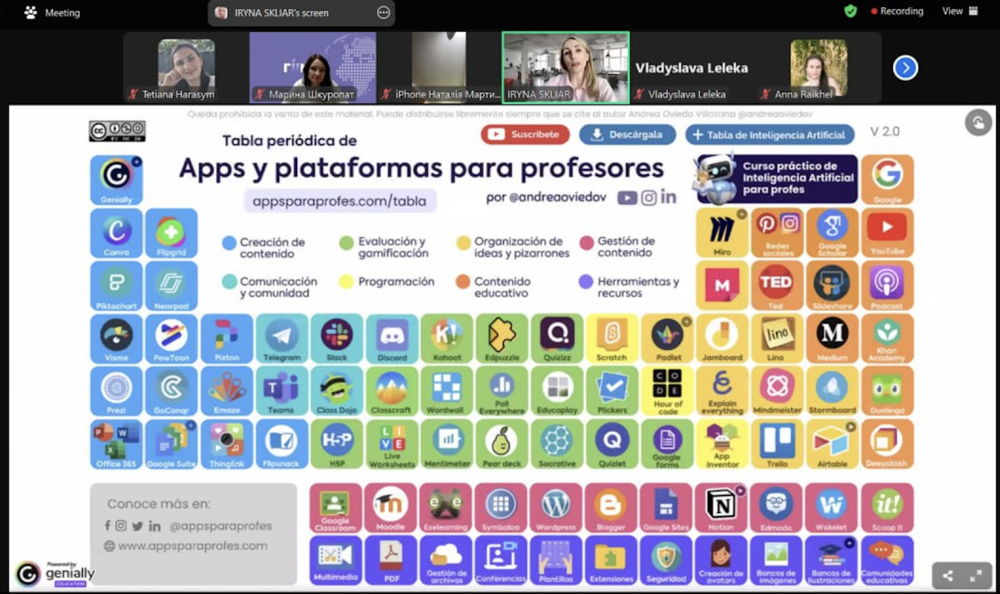 Учасники вебінару отримали цінні практичні навички роботи з такими популярними та ефективними інструментами, як: Padlet TA, Genially, Napkin AI.