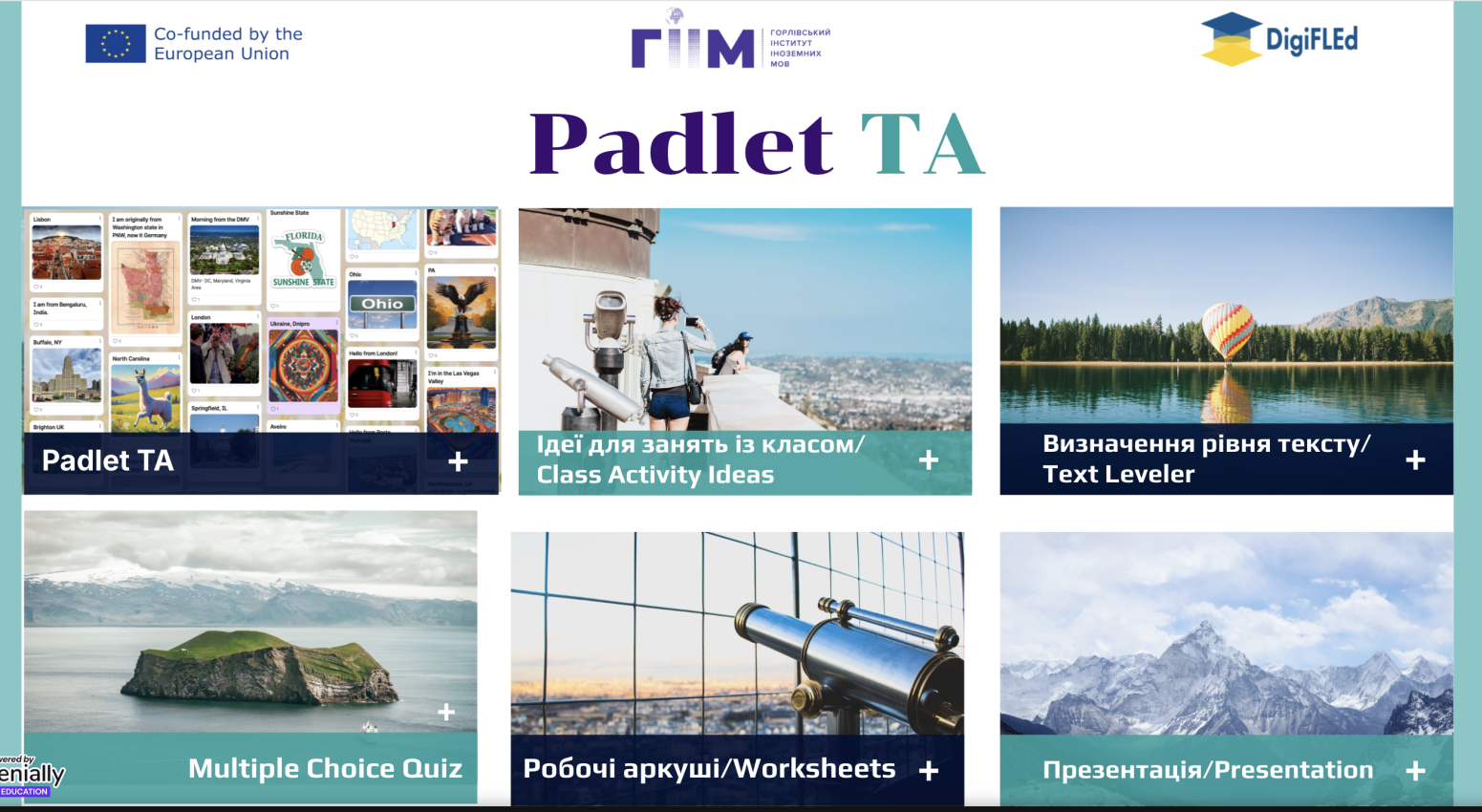 - Padlet TA – інноваційний асистент викладача, що використовує штучний інтелект для створення навчального контенту. Інструменти Padlet TA допомагають викладачам більше зосередитися на викладанні та менше витрачати часу на підготовку рутинних завдань. Padlet TA має потенціал зробити роботу вчителів ефективнішою та значно пришвидшити процес створення персоналізованого контенту для здобувачів освіти.