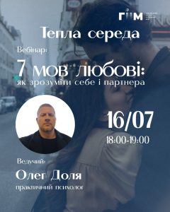 🤗Дорогі друзі! Запрошуємо на Теплу середу, 16.07.2025 року о 18:00. Тема зустрічі: “7 мов любові: як зрозуміти себе і партнера”…